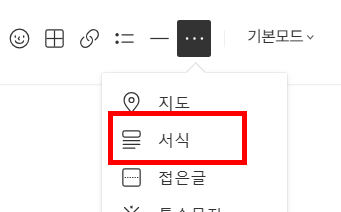 - 글쓰기에서 원하는 위치에 위 더 보기(가로 세 개의 점) - 서식을 클릭한 후 저장한 광고코드를 선택 후 삽입하면 수동 광고 삽입이 끝납니다.
